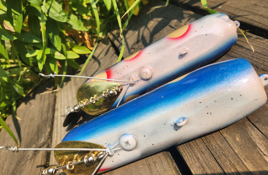 Hard bodied Tubes, In-line blade baits, Flap tails and other Tailspin style topwater fishing lures.